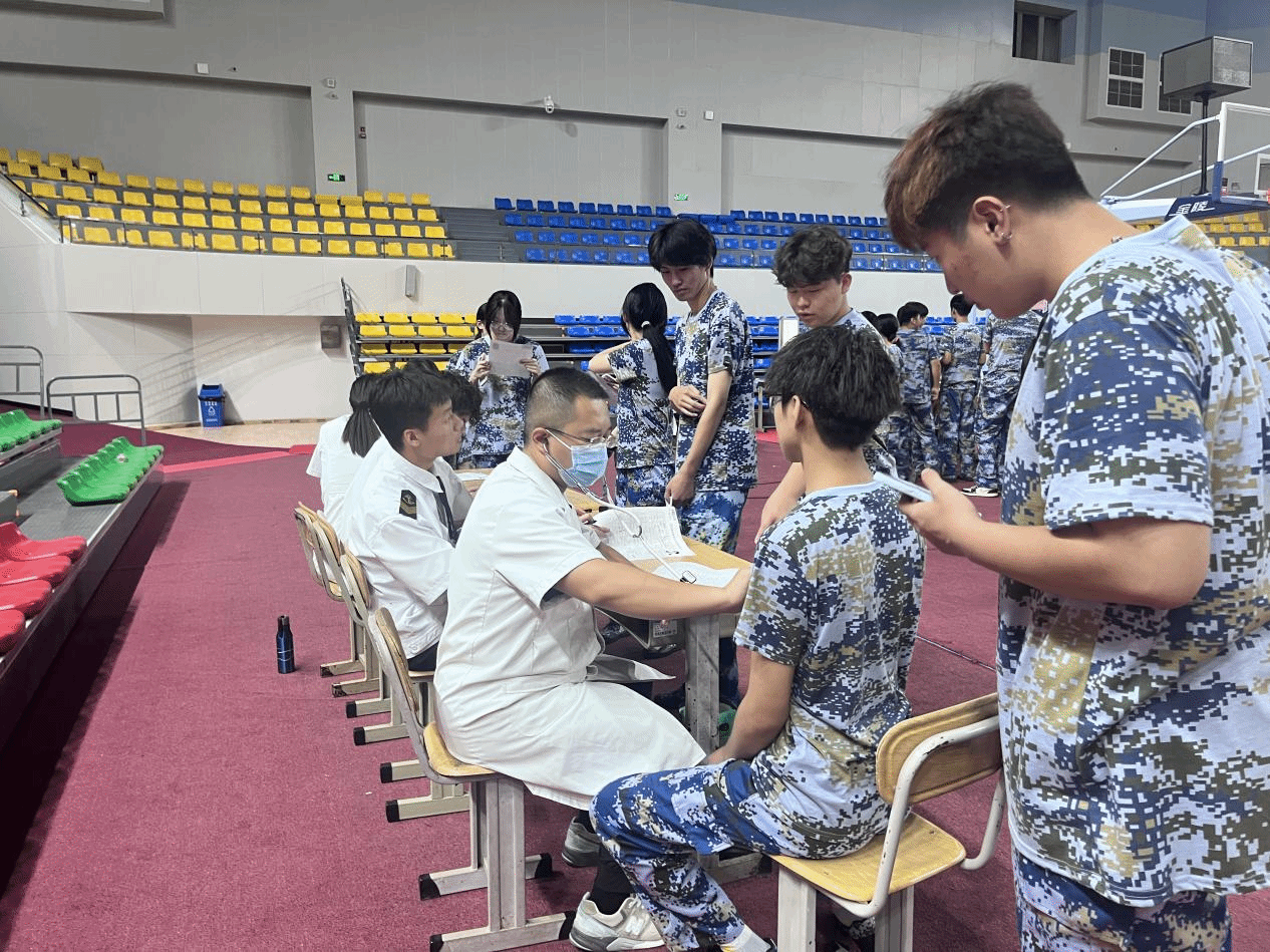 秋意初显的校园里,“五彩港湾”涌动青春朝气,而穿梭其间的医护人员则成为一抹宁静而专业的“白色剪影”。为保障体检工作高效完成,学院卫生所提前筹划、周密部署,与青岛心血管病医院紧密对接,确保了场地、设备和流程的合理安排。军训期间,各学院分时段、分批次组织学生前往体检点,现场秩序井然,展现了良好的组织纪律性。